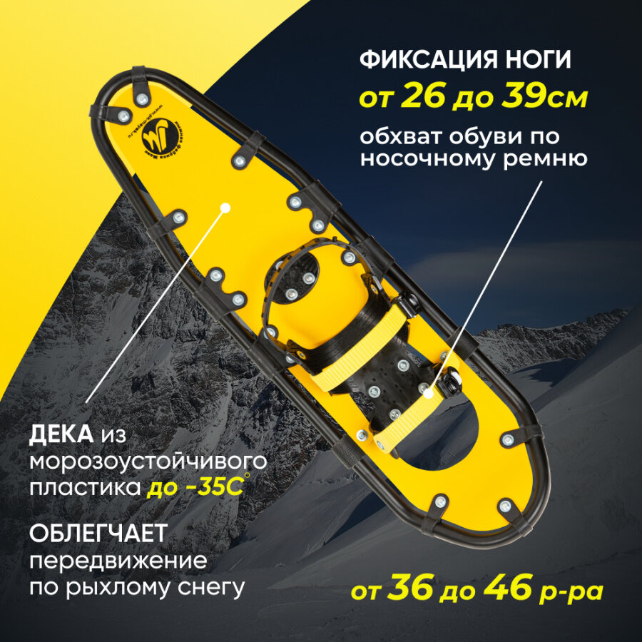 Снегоступы Маяк 68 х 23 см (до 90 кг) с чехлом для охоты и рыбалки, желтые: сравнение цен, характеристики, фото, актуальное наличие и цены.