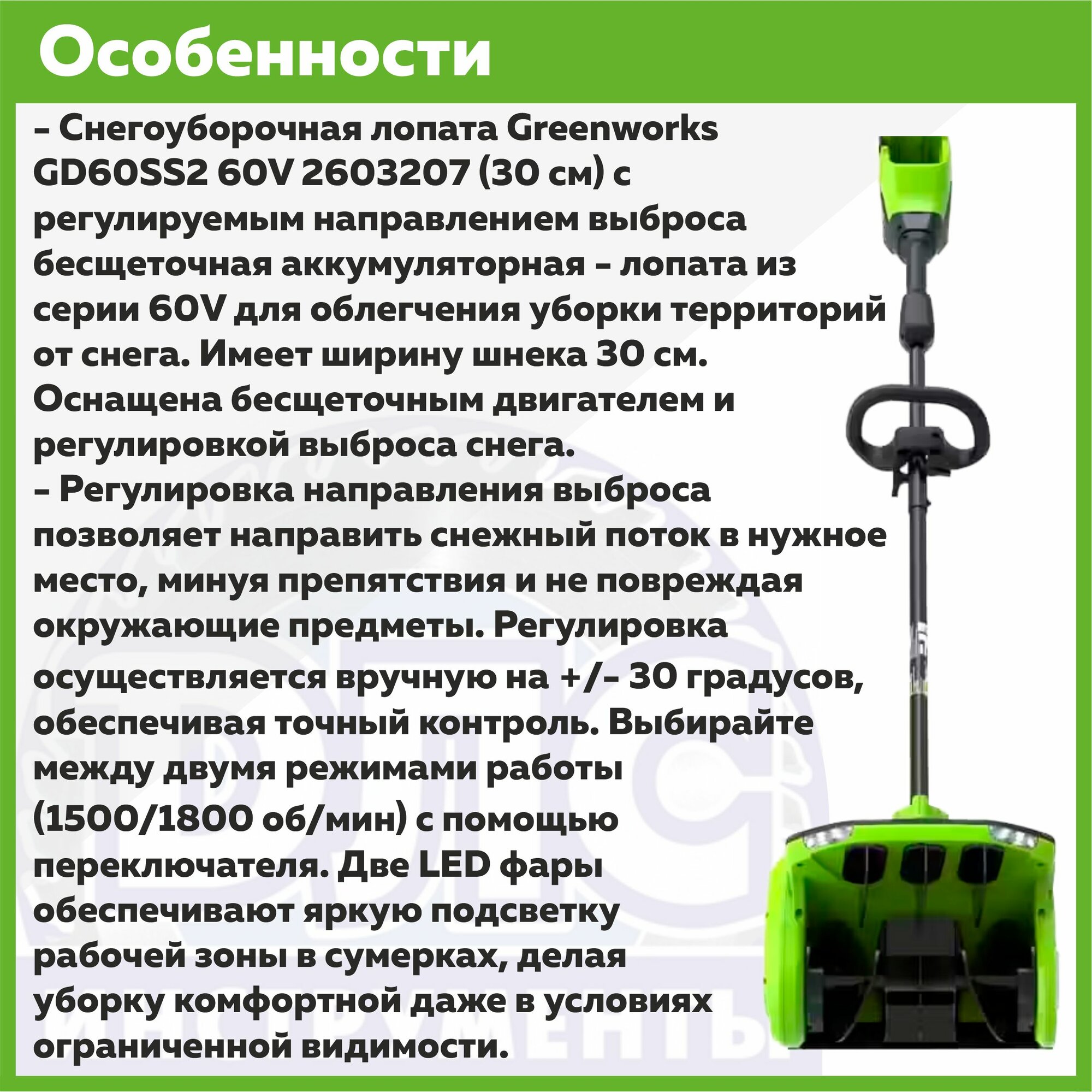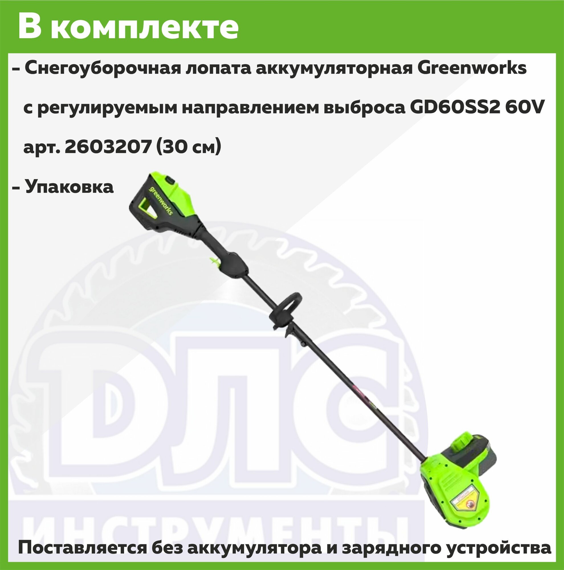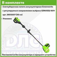 Купить Снегоуборочная лопата аккумуляторная Greenworks GD60SS2 с регулируемым направлением выброса 60V 2603207 (30 см) аккумуляторная без АКБ И ЗУ с доставкой по всей России. Снегоуборочная лопата аккумуляторная Greenworks GD60SS2 с регулируемым направлением выброса 60V 2603207 (30 см) аккумуляторная без АКБ И ЗУ: сравнение цен, характеристики, фото, актуальное наличие и цены.