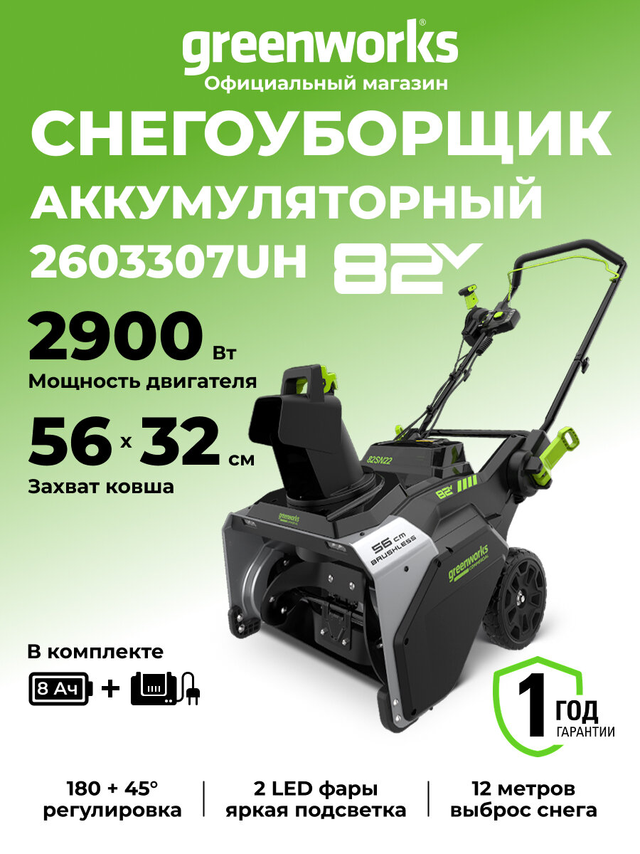 Купить Снегоуборщик Greenworks Арт 2603307 82 V, 56см, аккумулятор 82В с доставкой по всей России. Снегоуборщик Greenworks Арт 2603307 82 V, 56см, аккумулятор 82В: сравнение цен, характеристики, фото, актуальное наличие и цены.