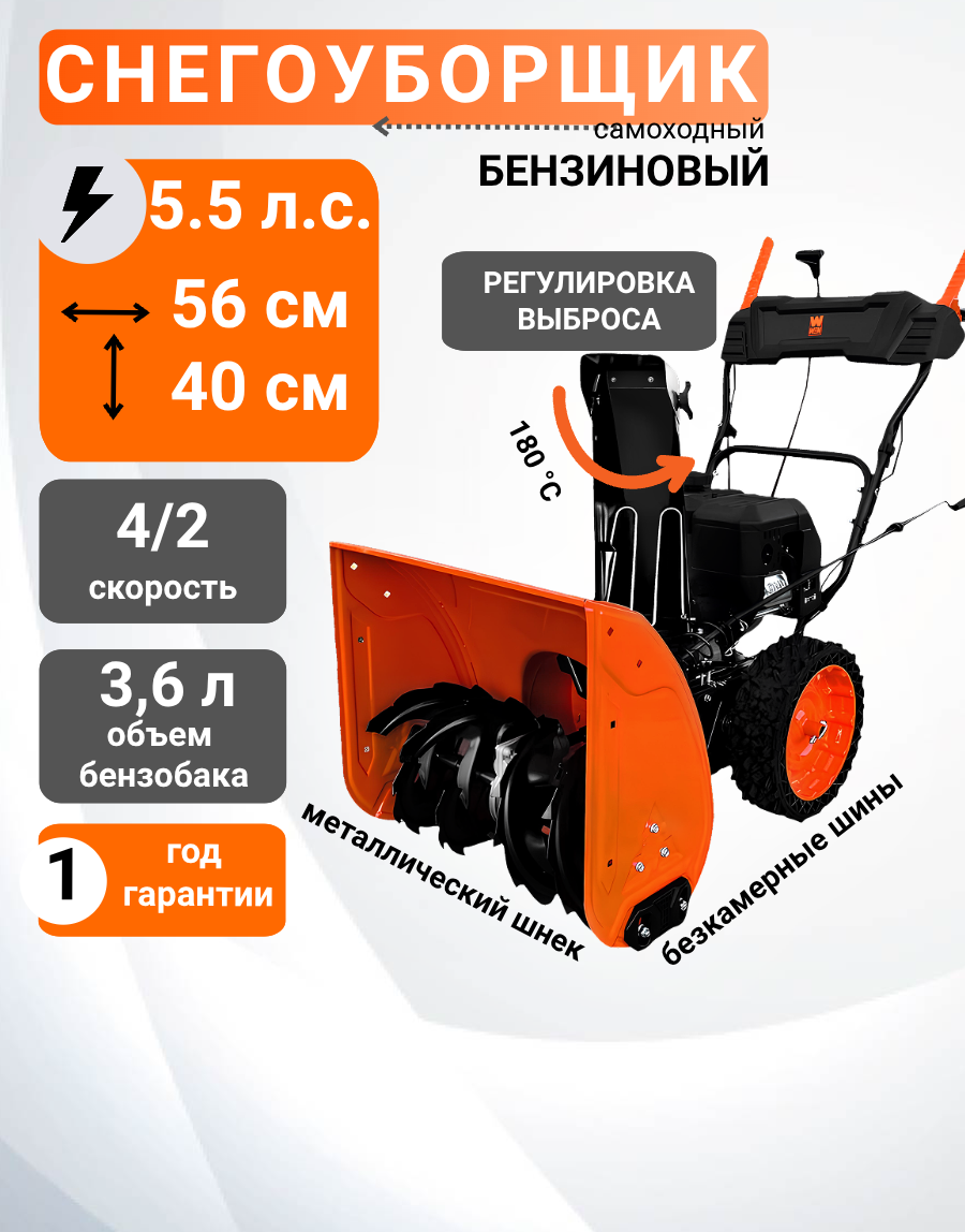 Снегоуборочная машина WEN, 5.5 л. с, самоходная, 4 скорости, бензиновый двигатель