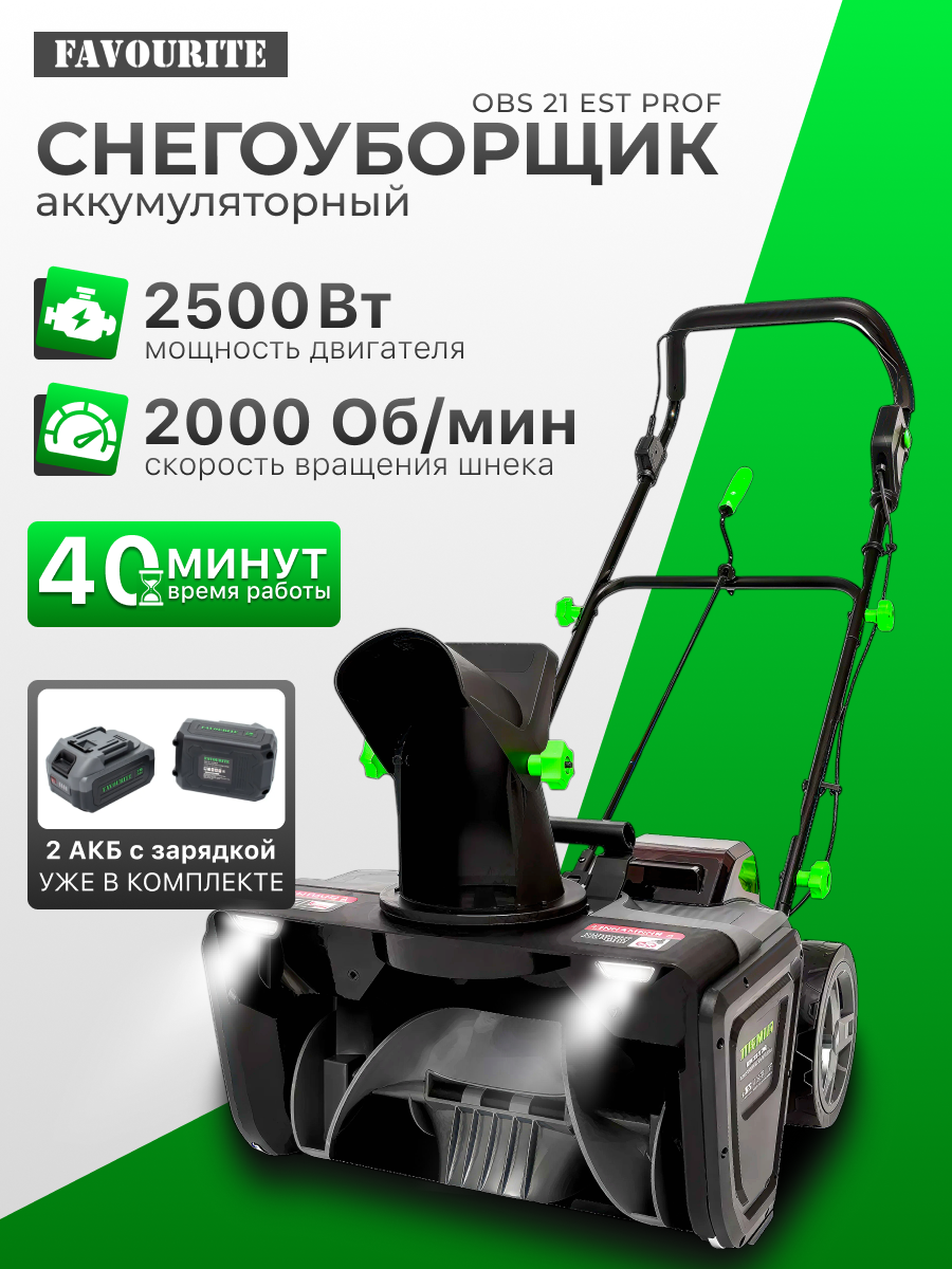 Купить Снегоуборщик аккумуляторный FAVOURITE OBS 21 EST PROF, 21+21 В, 4 Ач, 50/25 см, 7 м с доставкой по всей России.