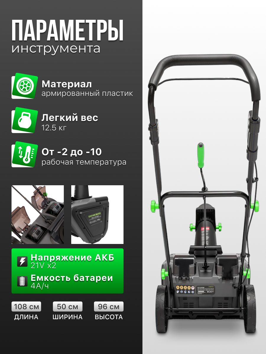 Снегоуборщик аккумуляторный FAVOURITE OBS 21 EST PROF, 21+21 В, 4 Ач, 50/25 см, 7 м: сравнение цен, характеристики, фото, актуальное наличие и цены.