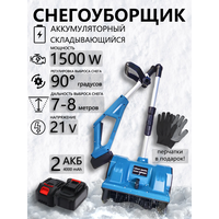 Купить Снегоуборщик аккумуляторный лопата с регулировкой выброса, складная 2 АКБ, ЗУ, Синий (электролопата для уборки снега) с доставкой по всей России.