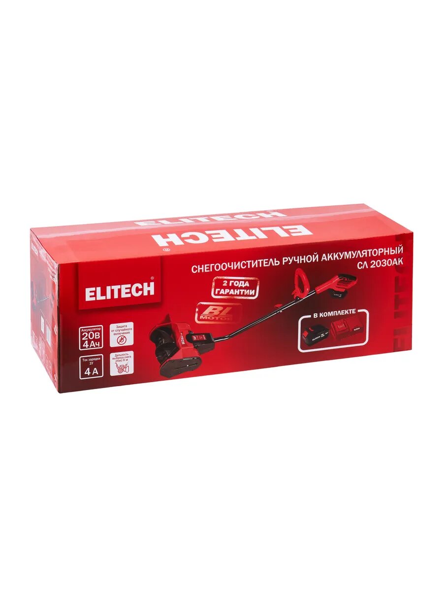 Снегоуборщик ELITECH СЛ 2030АК, аккумуляторный, пластиковый шнек, дальность выброса снега до 7,6м: сравнение цен, характеристики, фото, актуальное наличие и цены.