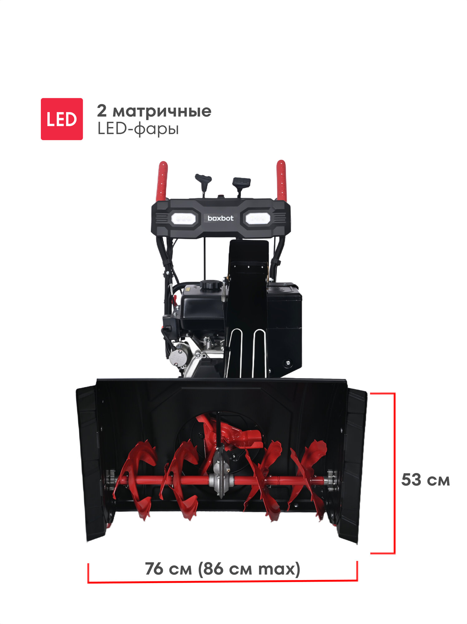 Снегоуборщик бензиновый Boxbot GS-1290XE, электростарт, 12 л. с, 6 вперед / 2 назад, 86х53см, LED-фары, подогрев ручек: сравнение цен, характеристики, фото, актуальное наличие и цены.