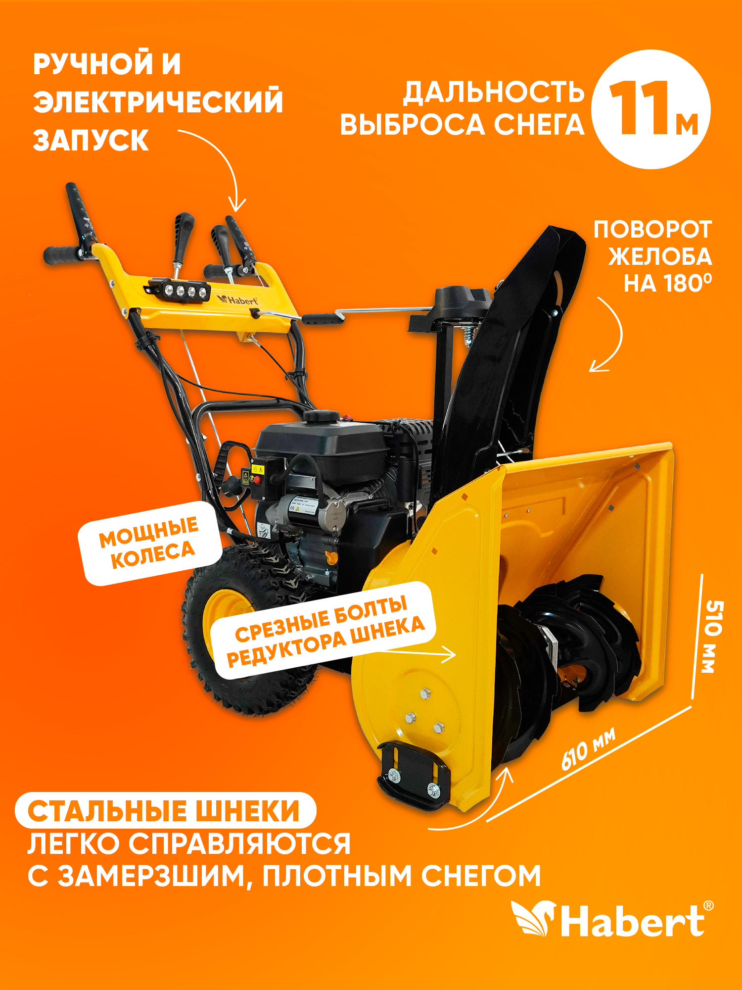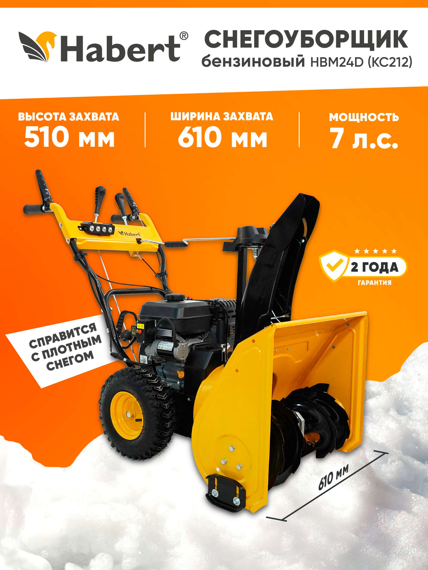 Снегоуборщик бензиновый Habert HBM24D (КС212) (7лс, выброс 11м, фара, передачи 4 вперед 1 назад, самоходный): сравнение цен, характеристики, фото, актуальное наличие и цены.