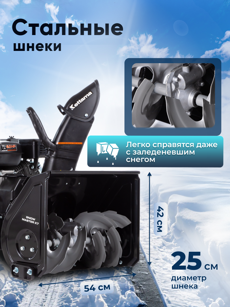 Любоваться снежной зимой и сугробами – признаем честно, удел горожан, о которых заботятся коммунальные службы. Для жителей загородных поселков и деревень снег – это в первую очередь хлопоты по расчистке дорог, а потом уже живописные виды. Справиться с проблемой заснеженных дорог без лишних усилий и риска завязнуть глубже в сугробах поможет снегоочиститель японского бренда Kettama. Этот снегоуборщик ручной бензиновый, несмотря на сравнительно небольшие размеры и вес всего 54 кило, что для устройства такого типа очень немного, способен единовременно очищать полосу снега более чем на полметра и выбрасывать лишние осадки по управляемой трубе на расстояние до 11 метров. Это поможет не сделать уборку снега снегоходом ручным сизифовым трудом, когда снег вроде бы и очищается, но тут же оказывается позади уборщика, и нужно начинать всё заново. Бензиновый снегоочиститель – устройство, которое заработает в любую погоду. Kettama Storm способен работать при температуре до минус шестидесяти градусов, в отличие от аккумуляторных лопат и электрических снегоуборщиков, значительно более капризных к погодным условиям. Ширина обработки дороги позволить за короткое время расчистить как минимум пешеходные и въездную дорожку. Среди ключевых особенностей снегоуборочной машины на бензине Kettama – наличие ледорубов, позволяющих не только сметать мягкий снежок, но и эффективно прорубать смерзшийся наст с наледью, прилагая в разы меньше физических усилий, чем если бы вы делали это вручную. Эта особенность делает снегоочиститель Kettama ещё и хорошим подарком пожилому человеку, проживающему в сельской местности, даже в сильные снегопады он не будет отрезан от внешнего мира и сможет выбраться из дома. Снегоуборочная лопата-ковш быстро «поглощает» пласты снега и выводит их наружу через трубу (интенсивность и дальность разброса снега вы сможете самостоятельно отрегулировать вручную). В конструкции снегоуборщика Kettama предусмотрены увеличенные в диаметре шипованные колеса, дающие улучшенное сцепление и улучшающие маневренность на скользкой поверхности (за маневренность также отвечают мини-лыжи в ходовой части). Прорезиненные ручки обеспечивают комфорт во время уборки, а управление остается простым, даже если вы будете в теплых рукавицах. Водонепроницаемый корпус из морозостойкого металла и полимеров сохраняет ходовую и уборочную системы снегоочистителя в безопасности при постоянном контакте с влажной средой при низких температурах. Ещё одним достоинством Kettama Storm для уборки снега остается минимум усилий, которые потребуются на уход. Своевременная заправка и смазка, чистка и техническое обслуживание дважды в год (перед началом сезона и по завершению) – вот всё, в чём нуждается снегоуборочная машина от японского бренда Kettama. Для тех, кто постоянно живет за городом, покупка снегоуборочной машины – вопрос не комфорта, но возможности полноценно жить в любое время года. Выбирая среди разных производителей снегоуборочных машин, рекомендуется обратить внимание на снегоуборщик бензиновый Kettama, покупке которого вы будете искренне радоваться, начиная каждый новый зимний сезон.