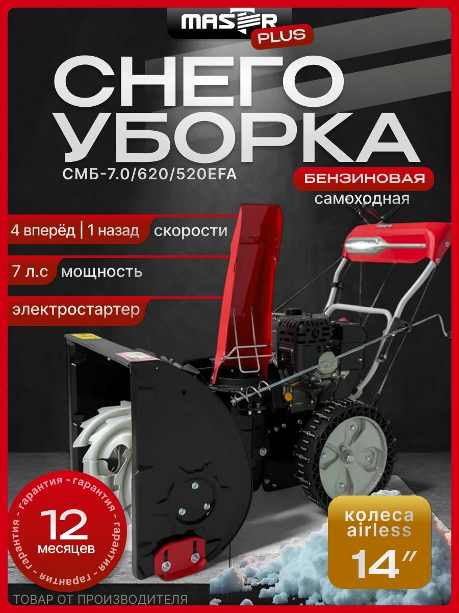 Купить Снегоуборщик бензиновый MASTER PLUS 7 л. с. СМБ-7.0/620/520EFA электростартер, фара, самоходный с доставкой по всей России. Снегоуборщик бензиновый MASTER PLUS 7 л. с. СМБ-7.0/620/520EFA электростартер, фара, самоходный: сравнение цен, характеристики, фото, актуальное наличие и цены.