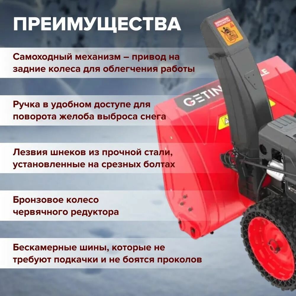 Купить Снегоуборщик бензиновый с ручным стартером Getink GS567 5, 2 л. с, ширина 560, глубина 520, скорости 6 вперёд / 2 назад с доставкой по всей России.