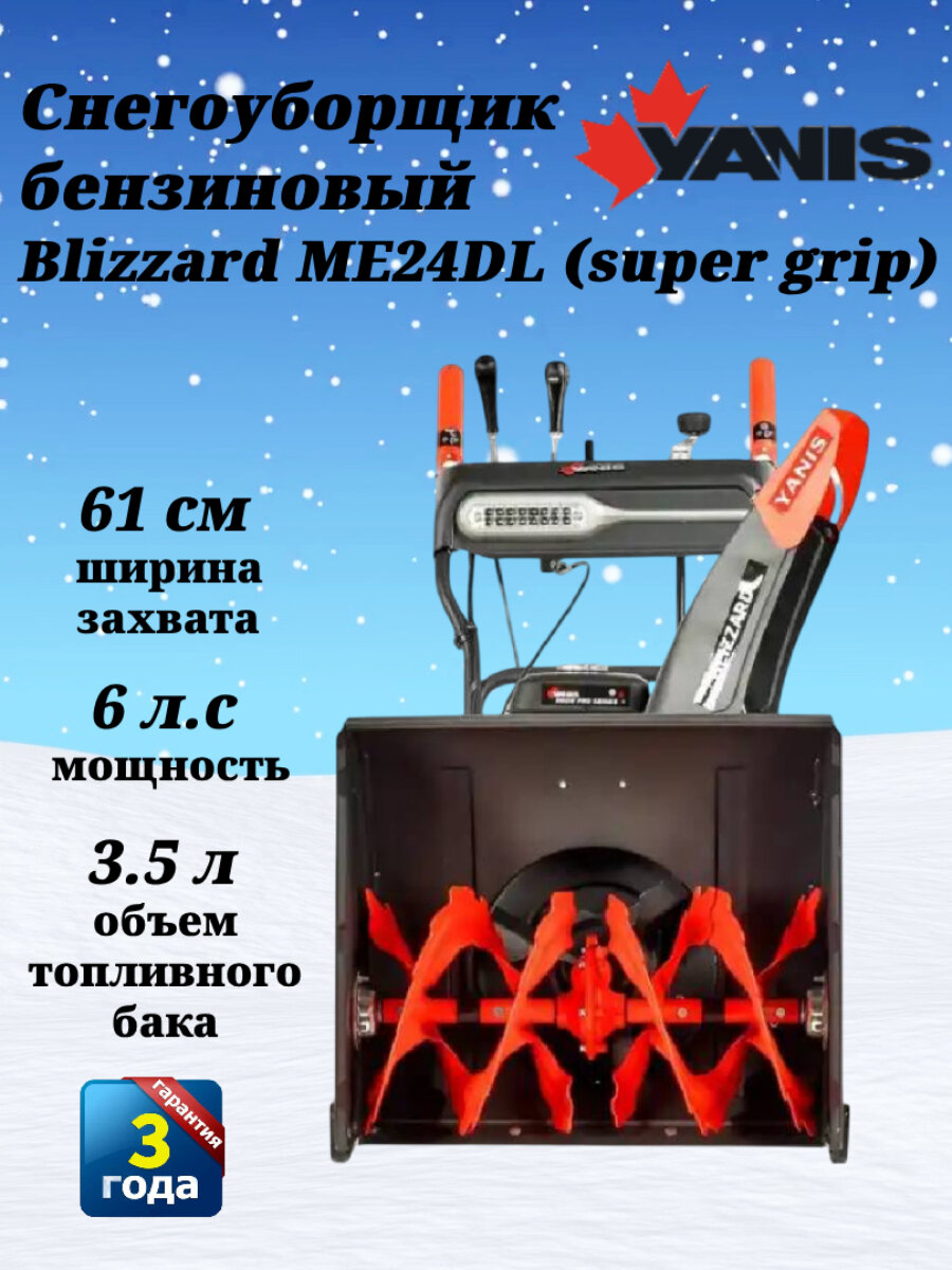 Снегоуборщик бензиновый Yanis Blizzard ME24DL (super grip), ширина захвата 61 см, мощность 4780 Вт, дальность выброса снега 11 м: сравнение цен, характеристики, фото, актуальное наличие и цены.
