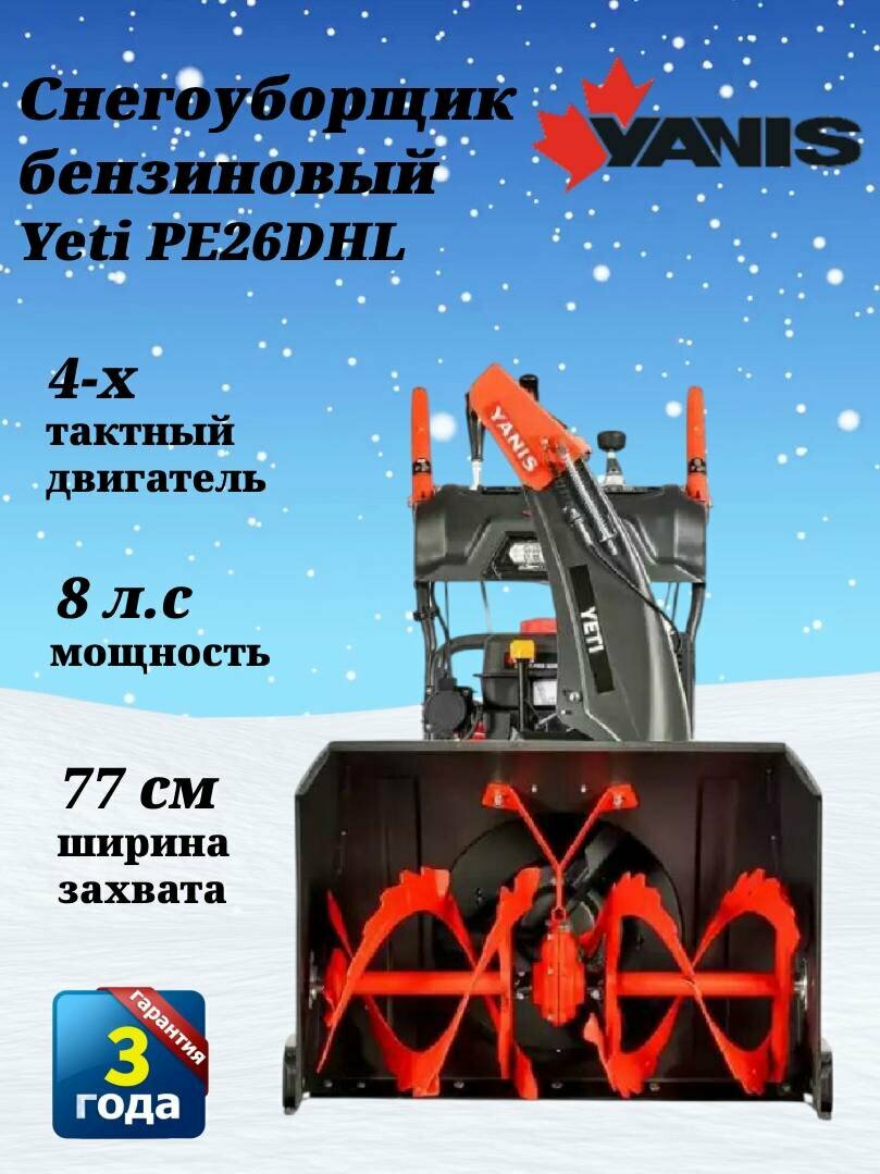 Купить Снегоуборщик бензиновый Yanis Yeti PE26DHL, объем двигателя 252 куб. см, ширина ковша 765 мм, мощность двигателя 8 л. с. с доставкой по всей России. Снегоуборщик бензиновый Yanis Yeti PE26DHL, объем двигателя 252 куб. см, ширина ковша 765 мм, мощность двигателя 8 л. с.: сравнение цен, характеристики, фото, актуальное наличие и цены.