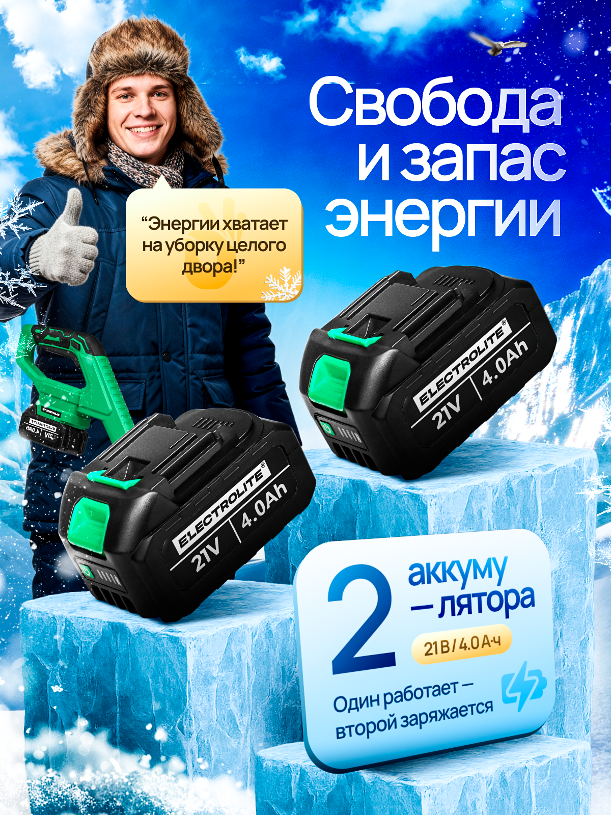 Снегоуборщик Electrolite «SSB 300BL», бесщеточный, аккумуляторный, дальность выброса 8 м: сравнение цен, характеристики, фото, актуальное наличие и цены.