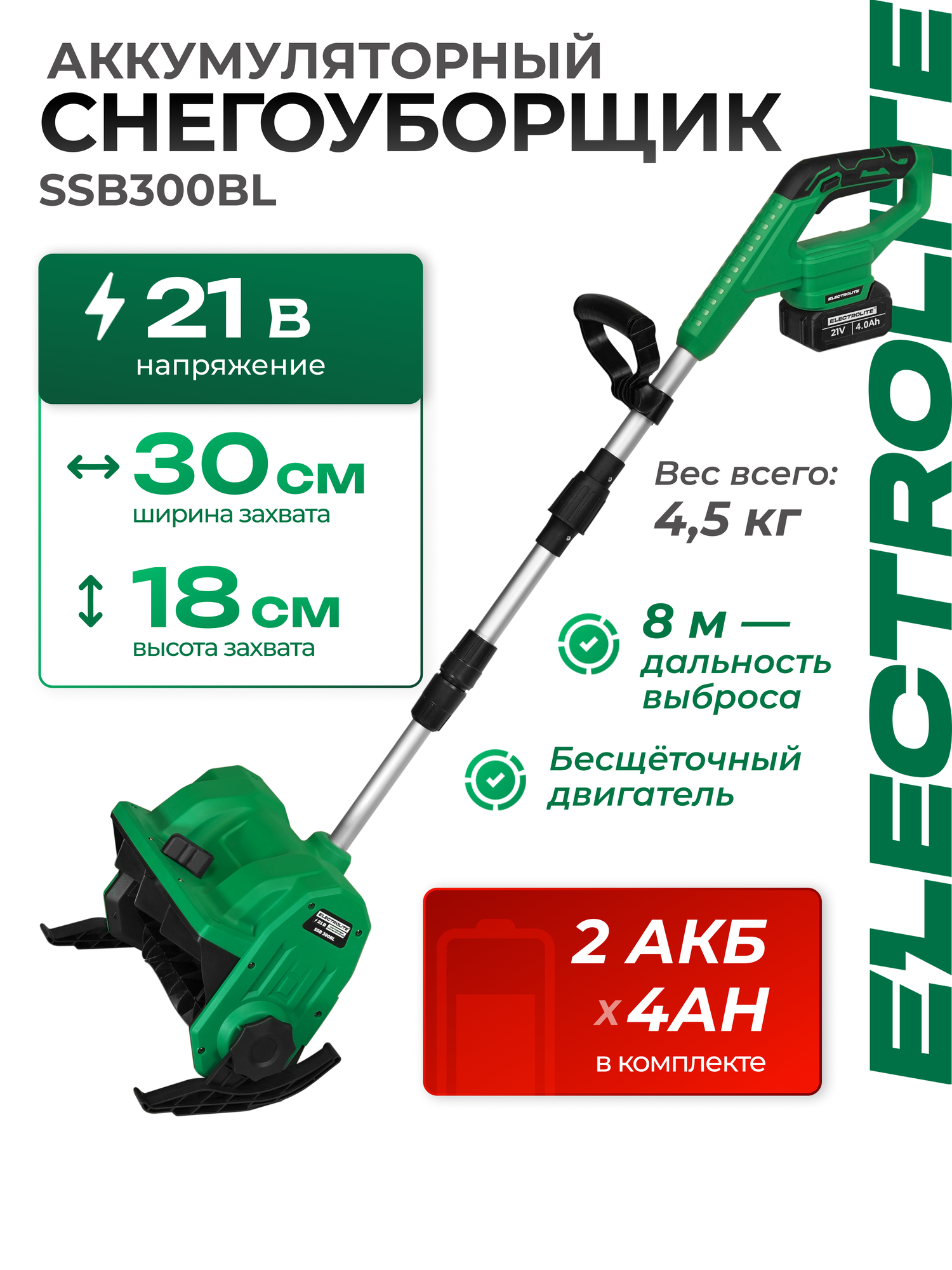 Купить Снегоуборщик Electrolite «SSB 300BL», бесщеточный, аккумуляторный, дальность выброса 8 м с доставкой по всей России.