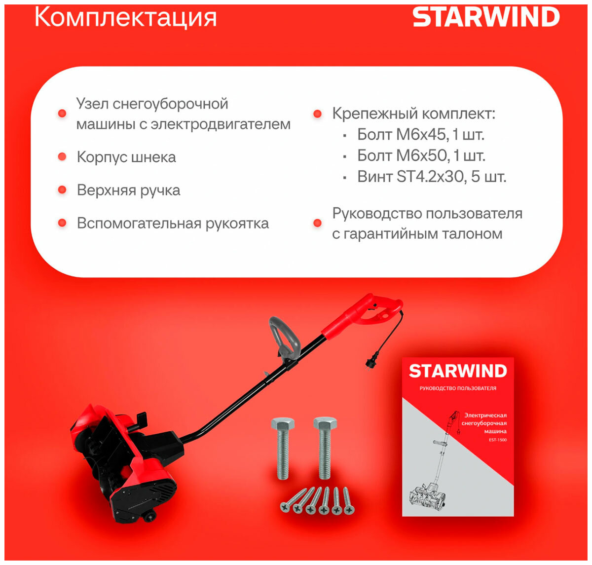 Снегоуборщик электрический Starwind EST-1500, 1.5кВт: сравнение цен, характеристики, фото, актуальное наличие и цены.