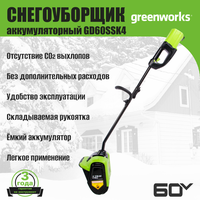 Снегоуборщик Greenworks аккумуляторный , 60V, 30 см, бесщеточный, c АКБ 4АЧ и ЗУ: сравнение цен, характеристики, фото, актуальное наличие и цены.