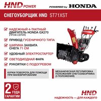 Снегоуборщик HND ST71XST оснащается 4-тактным одноцилиндровым OHV-двигателем Honda GX270 рабочим объемом 270 см3, 8.4 лошадиные силы с электростартером от аккумуляторной батареи. Высокое качество материалов и специальные компоненты гарантируют надежность и долговечность двигателя, что является одним из ключевых факторов для продолжительной работы снегоуборщика. Двигатель Honda обеспечивает низкий расход масла и топлива, что позволяет снизить общую стоимость эксплуатации снегоуборщика, обеспечивает низкий уровень вибрации и шума, а также легкий запуск поворотом ключа. Так же есть возможность запуска ручным стартером.