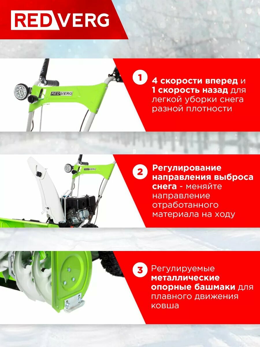 Снегоуборщик RedVerg «RD-SB56/7E», самоходный, бензиновый, ковш 56×40 см: сравнение цен, характеристики, фото, актуальное наличие и цены.