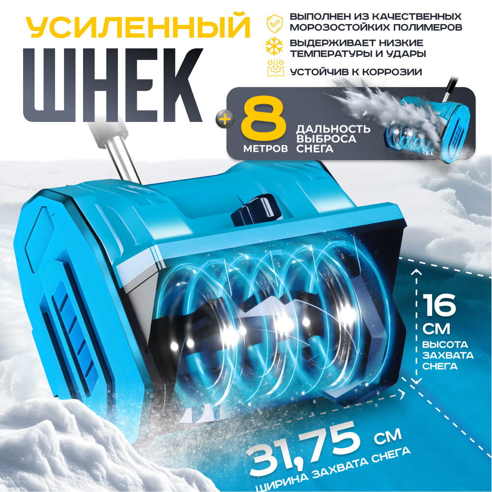 Купить Снегоуборщик TEXAMANCRAFT, аккумуляторный, бесщёточный двигатель, выброс снега до 8 м с доставкой по всей России.