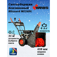 Снегоуборщик Yanis Blizzard ME24DL, самоходный, мощность 6 л. с, LED-фара, выброс снега 11 м, ширина ковша 610 мм