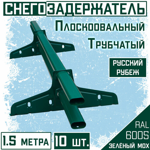 Снегозадержатель 10 штук трубчатый овальный Borge "Русский рубеж" (40х20 мм/ 1,5м) RAL 6005 сочно-зеленый для гибкой и металлочерепицы, профнастила