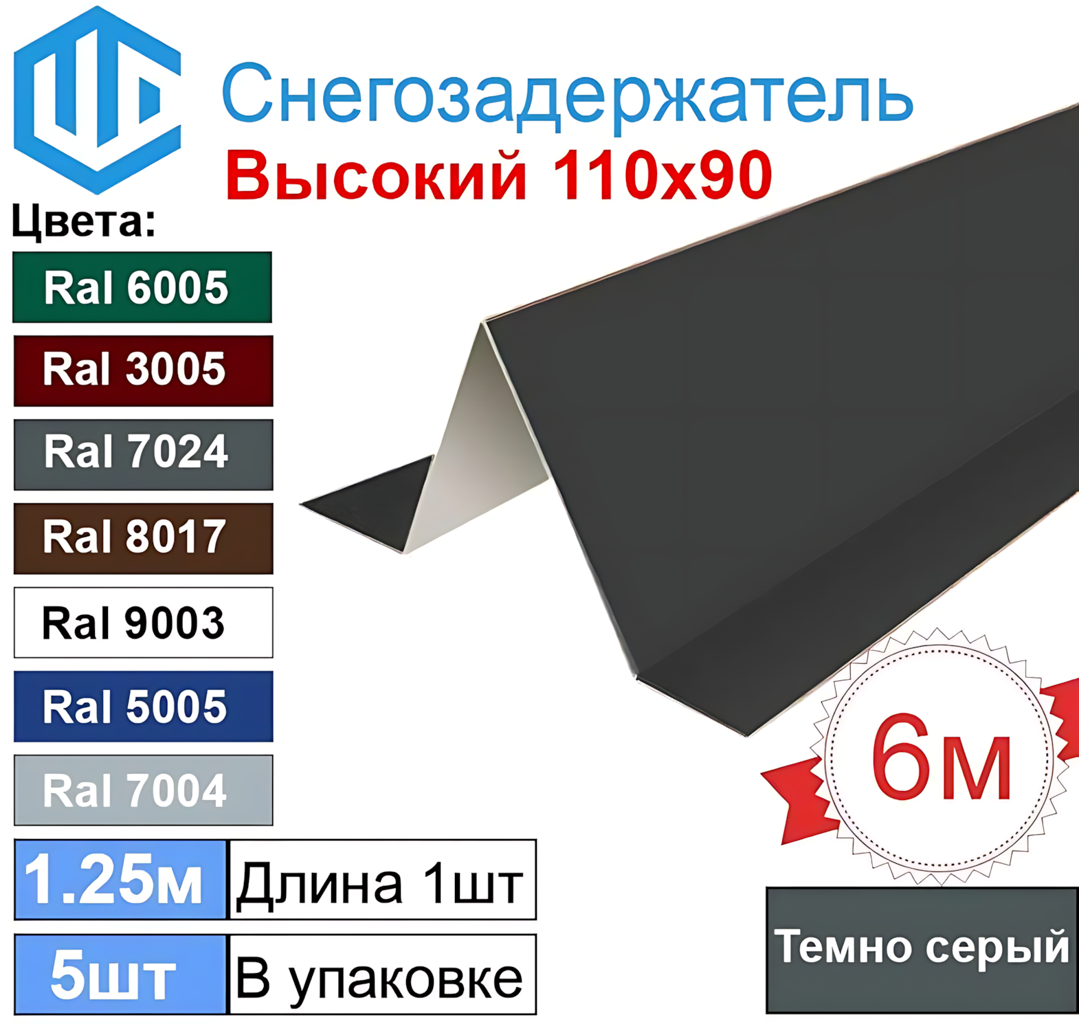 Снегозадержатель City-workshop Ral 7024, угловой, для металлочерепицы, 1.25 м, 5 шт.: сравнение цен, характеристики, фото, актуальное наличие и цены.