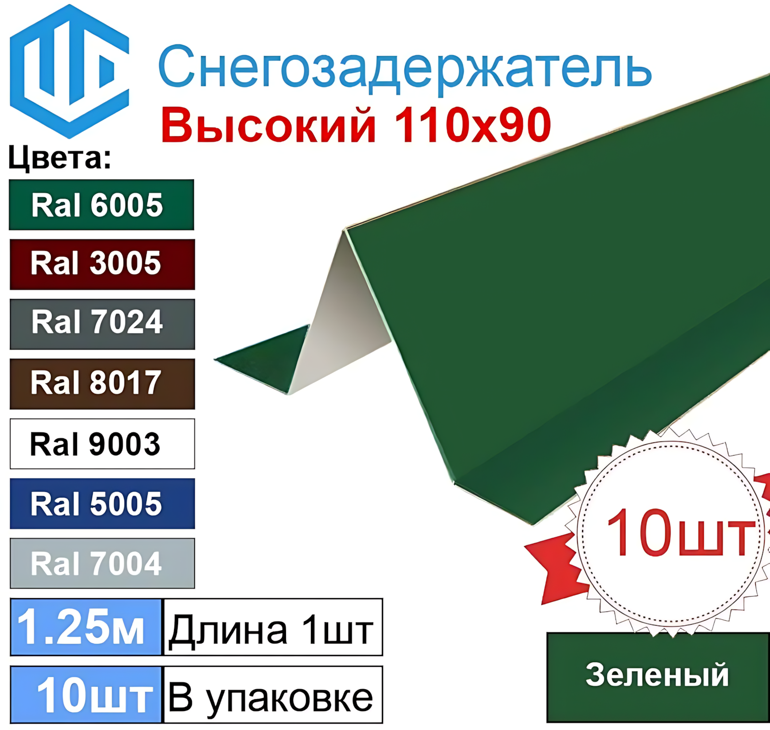 Снегозадержатель City-workshop, угловой, RAL 6005, 1.25 м, 10 шт: сравнение цен, характеристики, фото, актуальное наличие и цены.