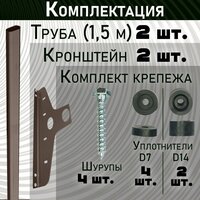Комплектация включает 2 трубы длиной 1,5 м, 2 кронштейна и комплект крепежа. Снегозадержатель устанавливается на обрешетку крыши и фиксируется механически.