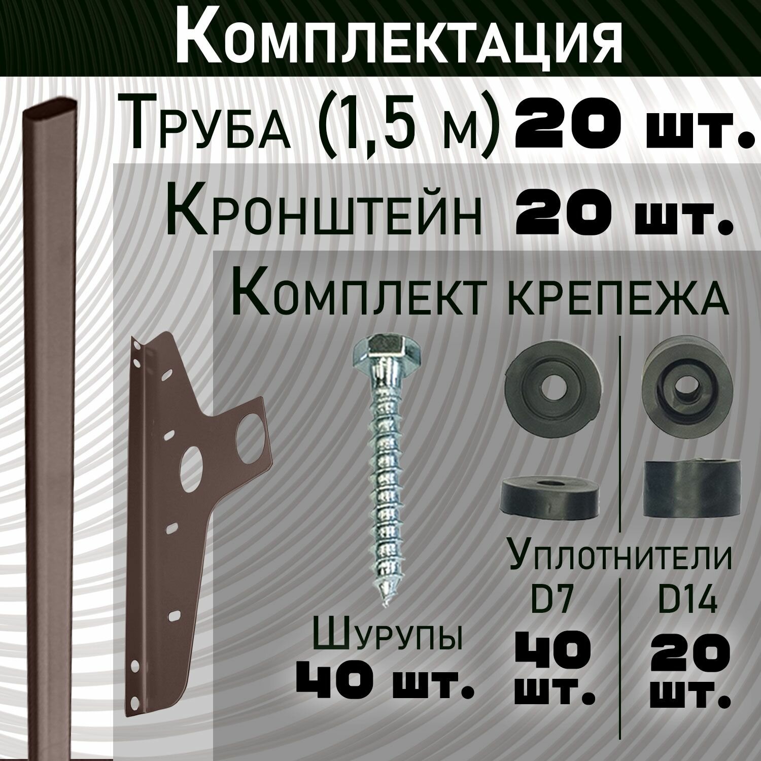 В комплект поставки входят 20 плоскоовальных труб длиной 1,5 метра, 20 кровельных кронштейнов, комплект крепежа и инструкция по монтажу. Снегозадержатель легко устанавливается на обрешетку крыши и фиксируется механическим способом.