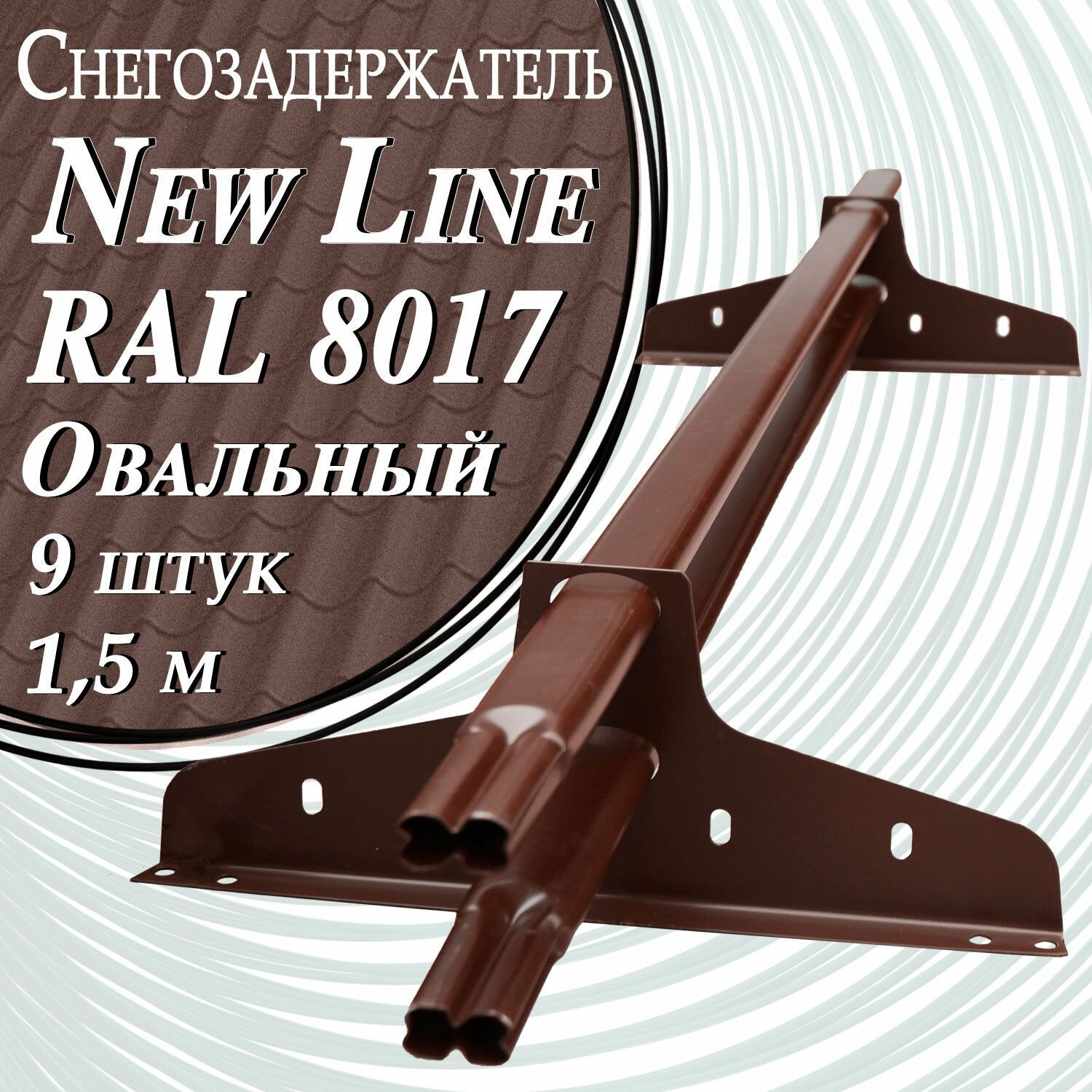 Снегозадержатель NewLine 1,5 м 8 шт. 40х20 мм ( 16 кронштейнов ) плоскоовальный на крышу трубчатый эконом для кровли из металлочерепицы, профнастила и гибкой черепицы ( RAL 8017 ) коричневый шоколад