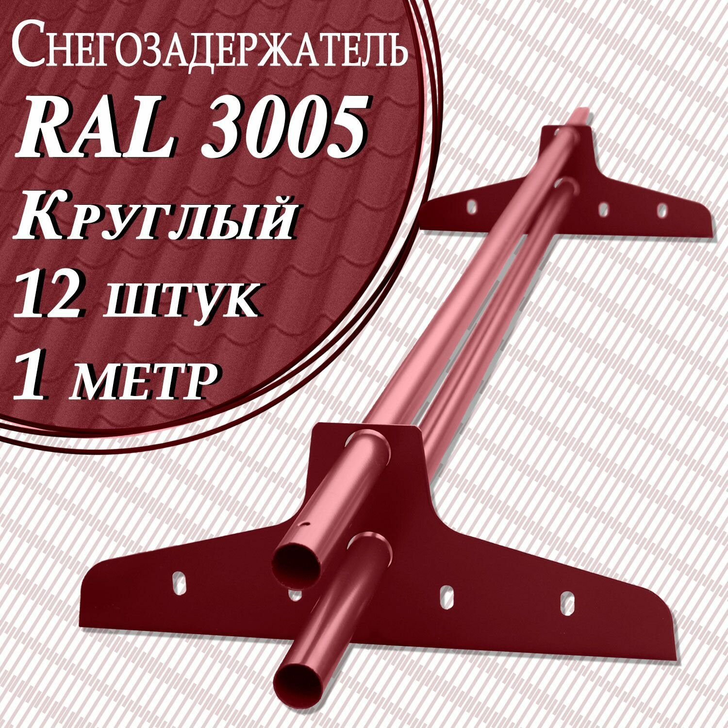Снегозадержатель Вегасток (1 м х 12 штук ) круглый RAL 3005 ( d 25 мм) для кровли из металлочерепицы, профнастила и гибкой черепицы ( 24 кронштейна ) на крышу трубчатый красный вишневый: сравнение цен, характеристики, фото, актуальное наличие и цены.