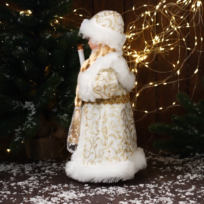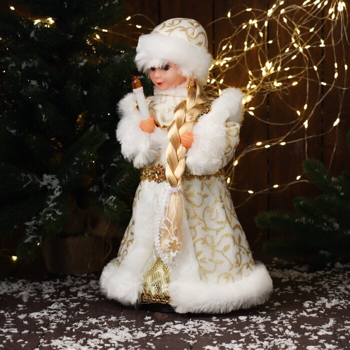 Купить Снегурочка под елку Зимнее волшебство «В шубке с орнаментом» двигается, с подсветкой, 40 см, золото с доставкой по всей России.