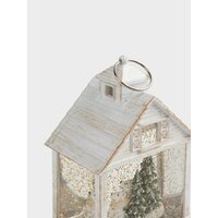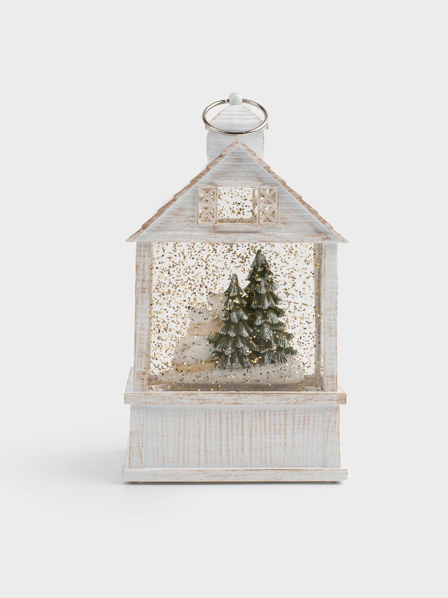 Купить Снежный фонарь, 17 см, с подсветкой, пластик, белый, Мишка в домике, White style с доставкой по всей России.