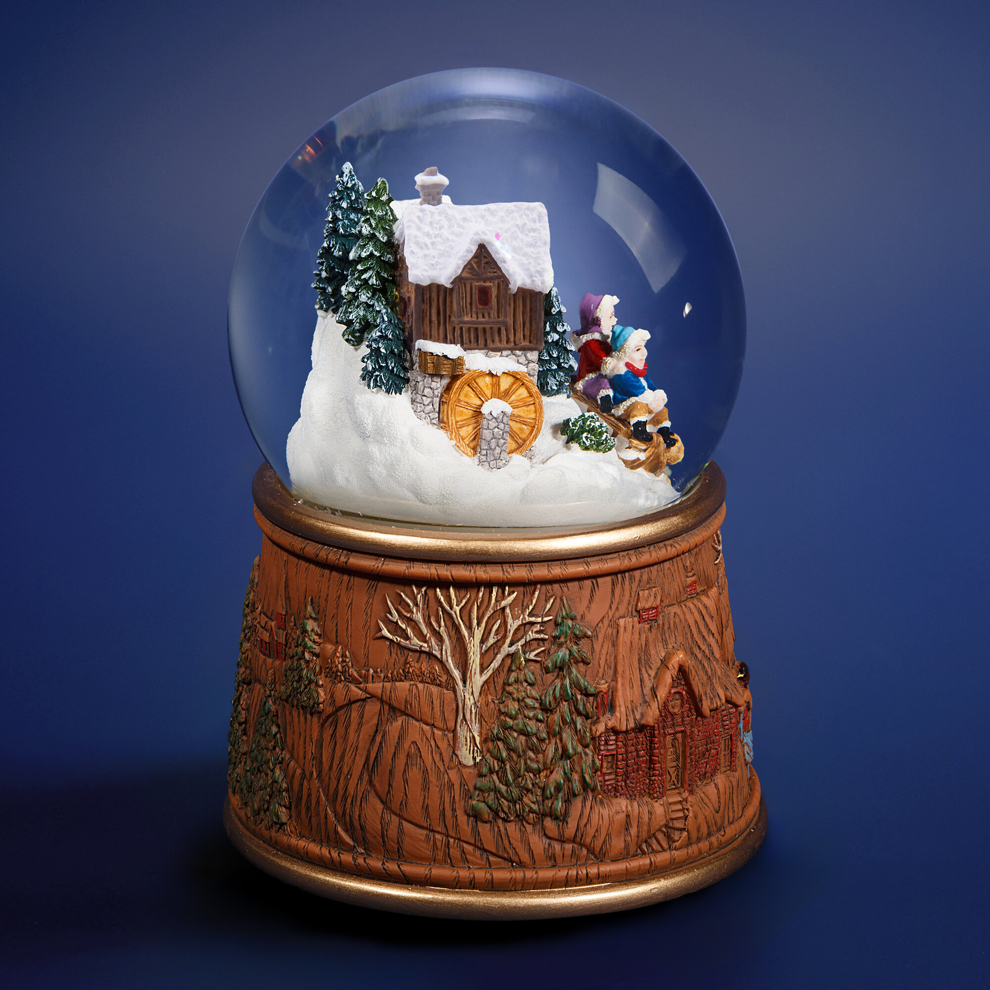 Каждая деталь этого снежного шара, от узоров на резной подставке, выполненной "под дерево" продумана, и выполнена с исключительным мастерством. Лица детей прорисованы с особой тщательностью, придавая композиции неповторимое очарование и живость.