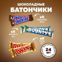 Купить Snickers, 50.5 г + Bounty 55 г. + TWIX 55 г. 8 шт. с доставкой по всей России. Snickers, 50.5 г + Bounty 55 г. + TWIX 55 г. 8 шт.: сравнение цен, характеристики, фото, актуальное наличие и цены.