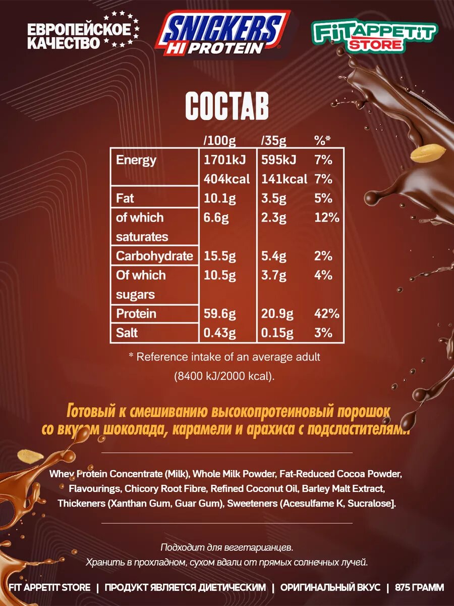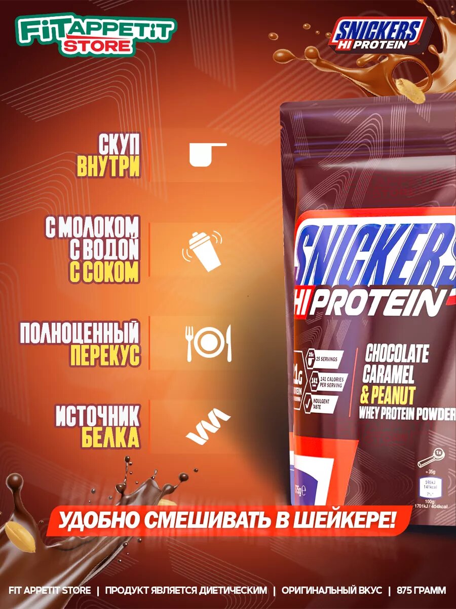 Купить Snickers HI PROTEIN Powder 875g Сывороточный протеиновый коктейль Сникерс вкус карамель+арахис с доставкой по всей России. Snickers HI PROTEIN Powder 875g Сывороточный протеиновый коктейль Сникерс вкус карамель+арахис: сравнение цен, характеристики, фото, актуальное наличие и цены.