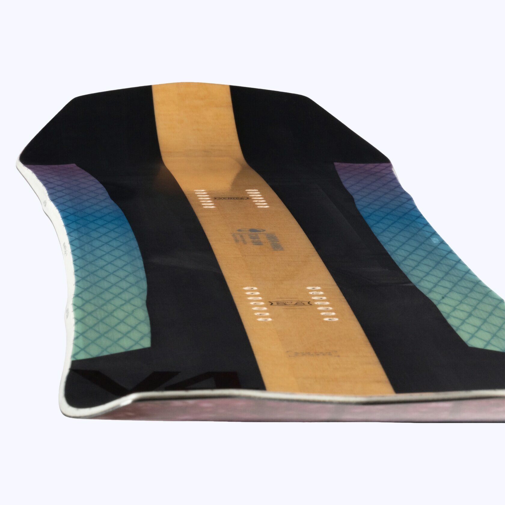 - Завернутые на 360° боковины — устраняют необходимость в заполнении кончиков, одновременно связывая сноуборд вместе. Технология, которая увеличивает срок службы и долговечности конструкции сноуборда.