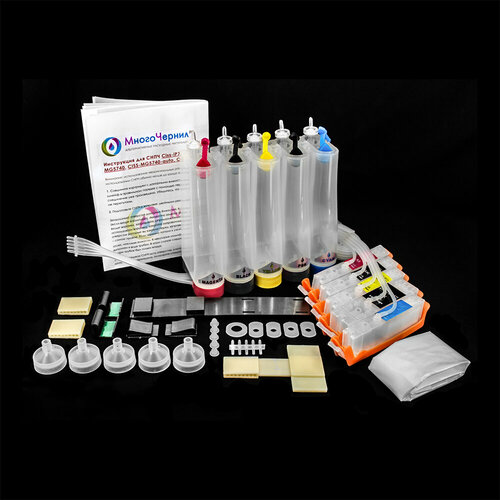 Система непрерывной подачи чернил (СНПЧ) для МФУ Canon PIXMA MG6840, MG5740, TS5040, TS6040 позволяет снизить себестоимость струйной цветной печати в десятки раз за счет использования недорогих совместимых, неоригинальных красителей. При этом прямое соединение картриджей в каретке с донорными емкостями позволяет редко заправлять систему (емкость полной СНПЧ - 80-100 мл. на каждый цвет)