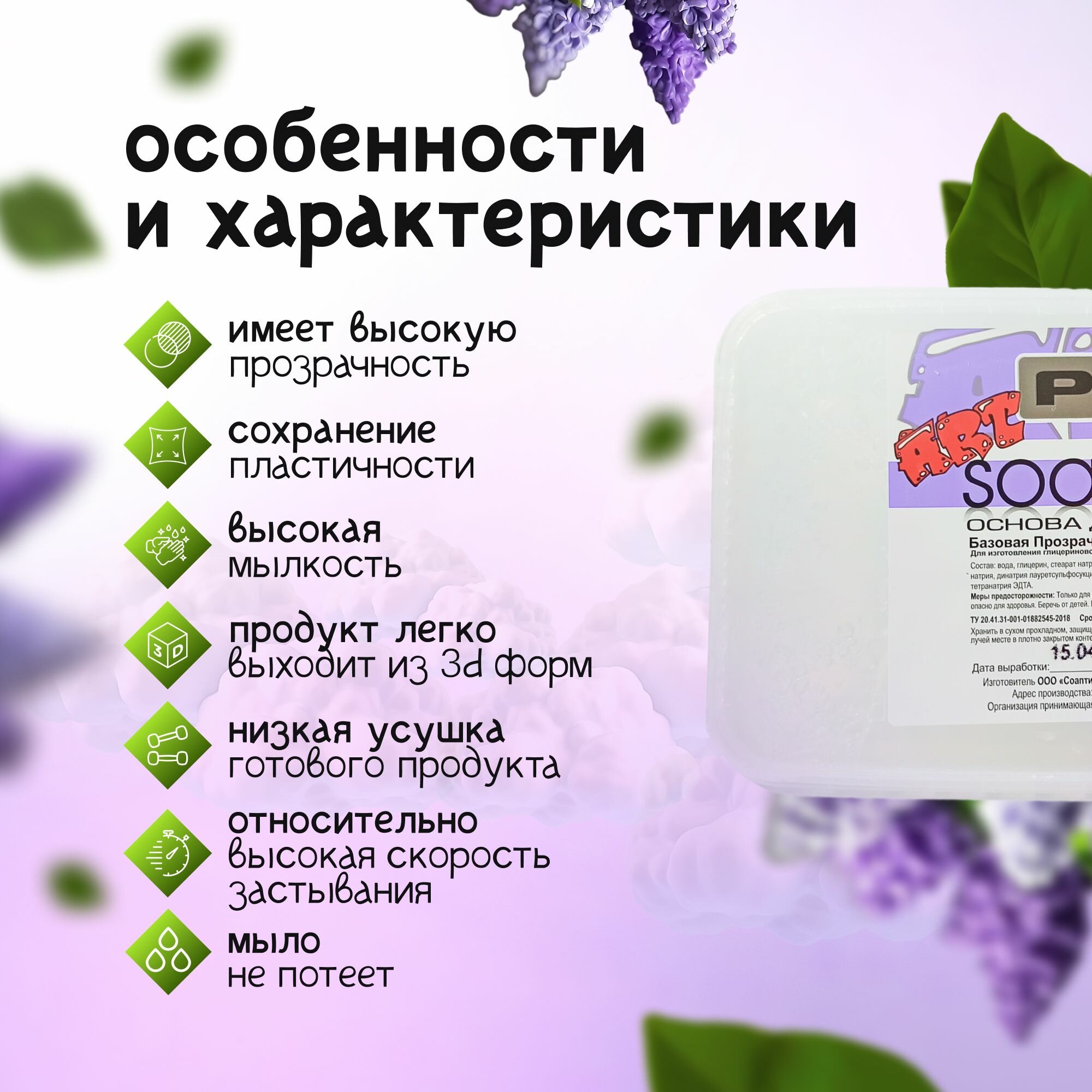 имеет высокую прозрачность, что позволяет ее использовать для мыла с картинками;