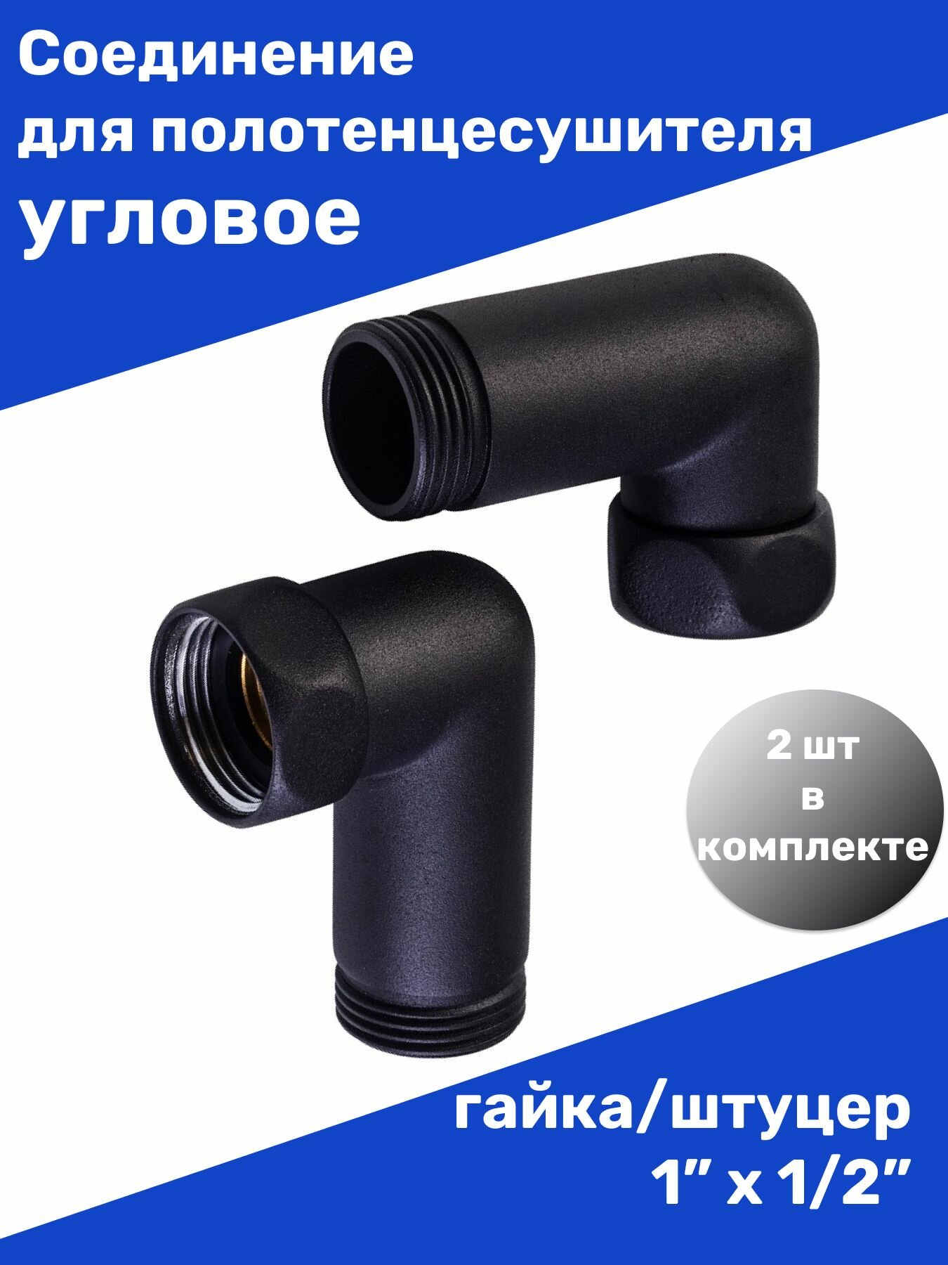 Угловое соединение с накидной гайкой (фитинг сантехнический) предназначено для подключения водяного полотенцесушителя к системе отопления или к ГВС.