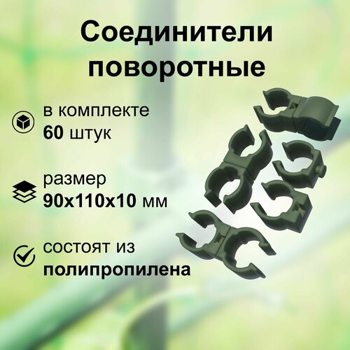Соединители поворотные, 60 шт, для трубки 10-12 мм, полипропилен, надежно скрепляют опоры парника между собой под любым углом, применимы для подвязки растений, для устройства шпалер, пергол, кустодержателей: сравнение цен, характеристики, фото, актуальное наличие и цены.