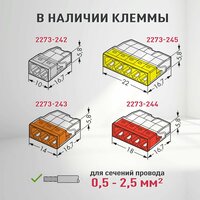 Соединительная клемма Wago (Аналог Wago) 3-х проводная самозажимная с пастой, ваги 2273-243, 20шт: сравнение цен, характеристики, фото, актуальное наличие и цены.