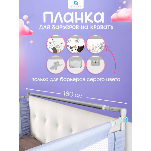 Соединительная планка в изголовье кровати способна усовершенствовать и улучшить использование защитных барьеров. Товар НЕ предусмотрен для моделей барьеров 100651667, 153738954, 153738955, 153738956, 86984964, 86984963, 86984965, 117623154, 86984962, 100648554, 100663229, 146335105, 100662908, 117623155 вне зависимости от их размера. Данная модель обновлена, поролон закрыт тканевым чехлом. Подходит только к серым барьерам без рисунка, барьеру с цветами, со зверем с ушками, а также со слоном. Среди плюсов отмечается повышенная защита от раскачивания - надежность соединения - устойчивость барьеров. Размер 180 см.
