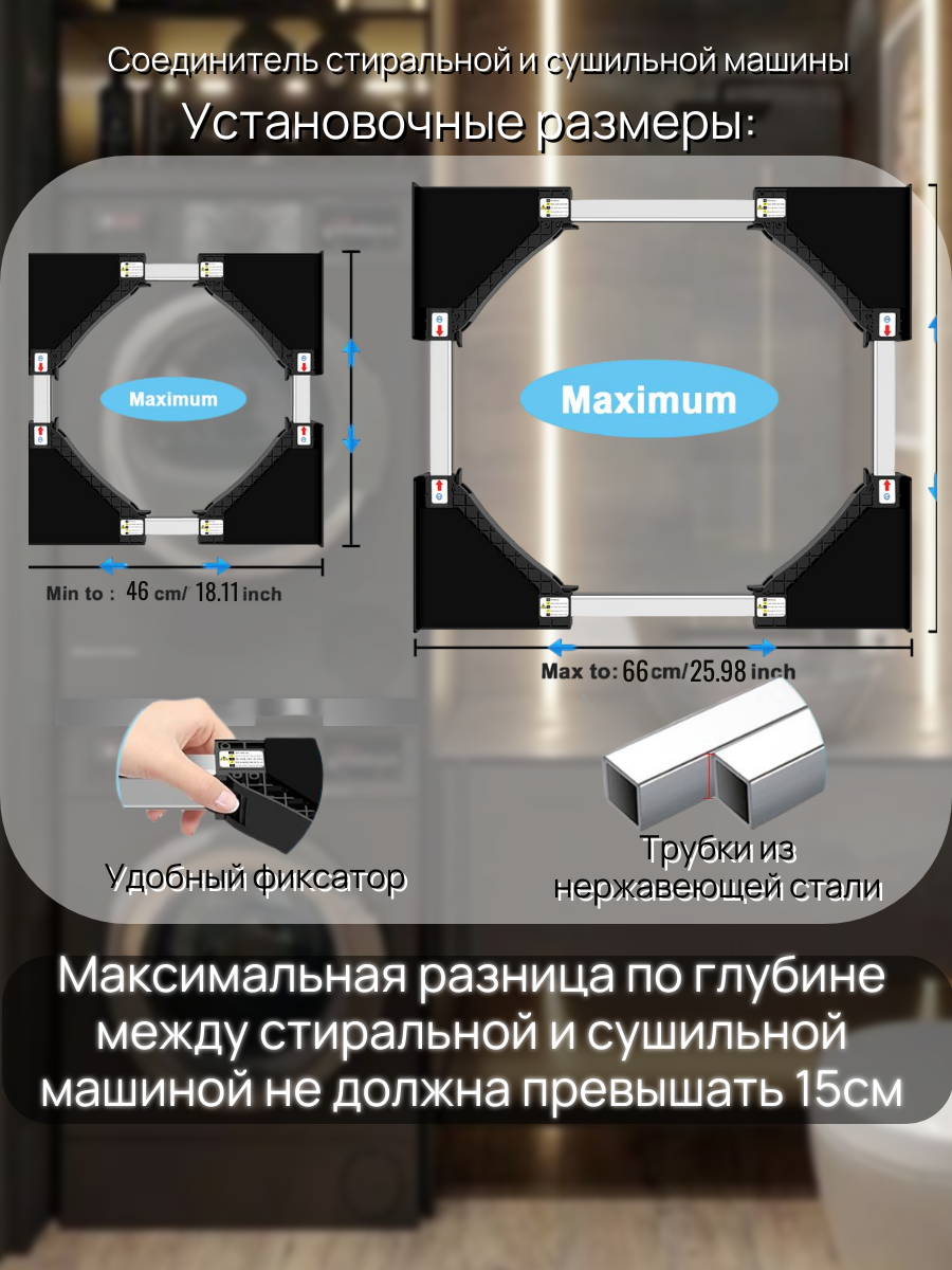 Соединительный элемент для сушильной и стиральной машины в колонну универсальный черный: сравнение цен, характеристики, фото, актуальное наличие и цены.