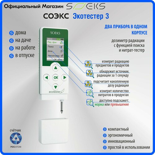 СОЭКС Экотестер 3 (дозиметр и нитрат-тестер): сравнение цен, характеристики, фото, актуальное наличие и цены.