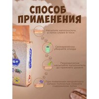Состав: кукурузный крахмал, волокна соевых бобов, Индийская гуаровая камедь, натуральные отдушки. Способ применения: Насыпьте слой 8-10 см в кошачий лоток. Удаляйте образовавшиеся комочки и твердые экскременты. Своевременно добавляйте новый наполнитель. Расход до 2 месяцев на 1 кошку.