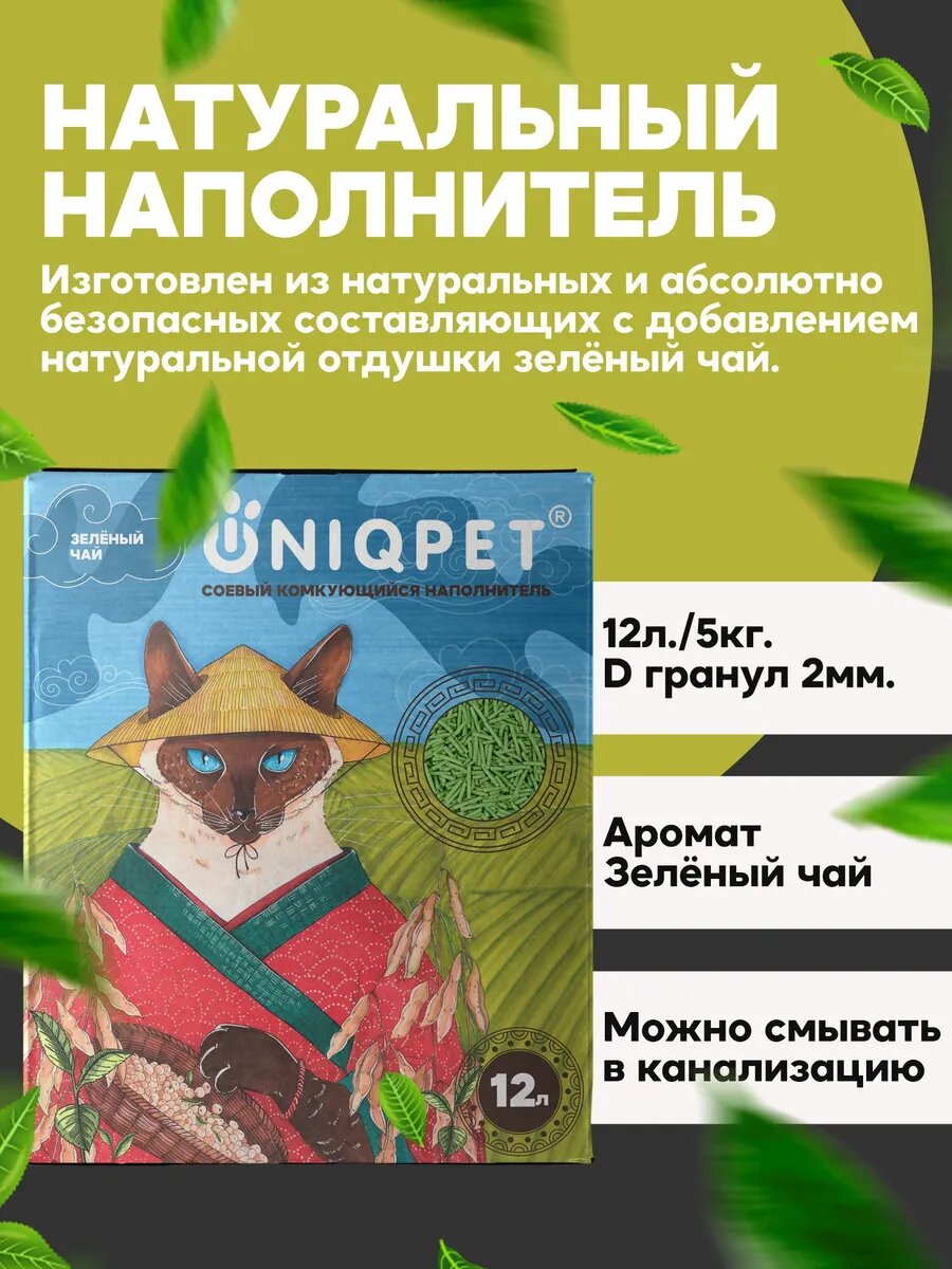 Представляем вам уникальный соевый наполнитель для кошачьего туалета - UNIQPET Тофу с ароматом Зелёный чай. Наш продукт отличается от других своей премиальной упаковкой, экономичностью и безупречным качеством. Забудьте о неприятных запахах и пыли! Наполнитель надежно нейтрализует запахи и обеспечивает комфортную атмосферу для вас и вашего питомца. Соевые экстрактные гранулы впитывают жидкость и образуют крепкий комок, надежно запирая запах внутри. Даже если вы не успели убрать лоток вовремя, наш наполнитель легко справится с последствиями. Мы используем только натуральные и безопасные составляющие: соевый тофу, кукурузный крахмал и гуаровую камедь. Наш товар для животных гипоаллергенный, экологически чистый и 100% биоразлагаемый. Он идеально подходит для всех кошек, котов и котят, собак и щенков, а также для хомяков, кроликов, морских свинок и других грызунов и птиц. Является прекрасным подарком для новых владельцев пушистых друзей.