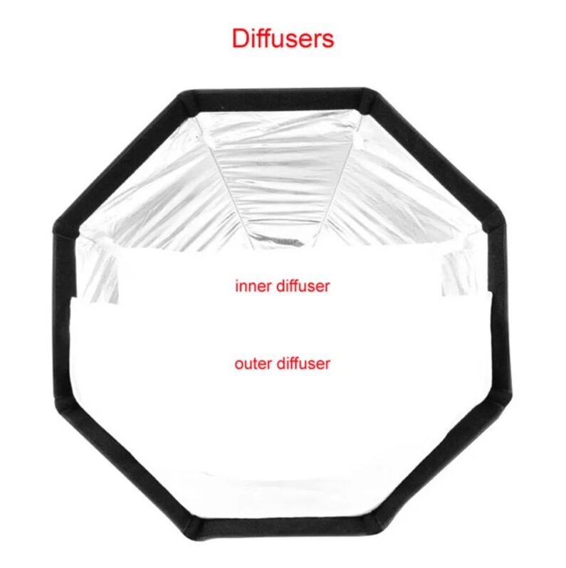 Внутренняя серебристая фактурная поверхность обеспечивает равномерное распределение света внутри октобокса.