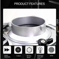 В комплекте: - октобокс - внешний диффузор - основной рассеиватель - внутренний диффузор - рассеиватель центрального пятна - крепление Bowens - сумка-чехол для переноски всего комплекта - соты
