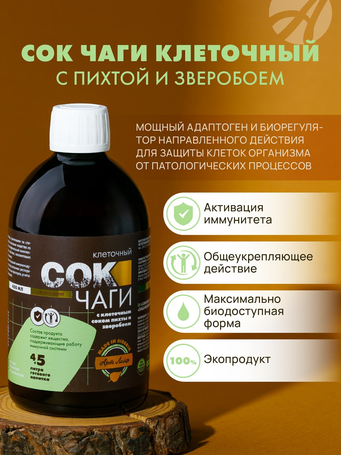 Сок Чаги клеточный с пихтой и зверобоем Поддерживает работу иммунной системы