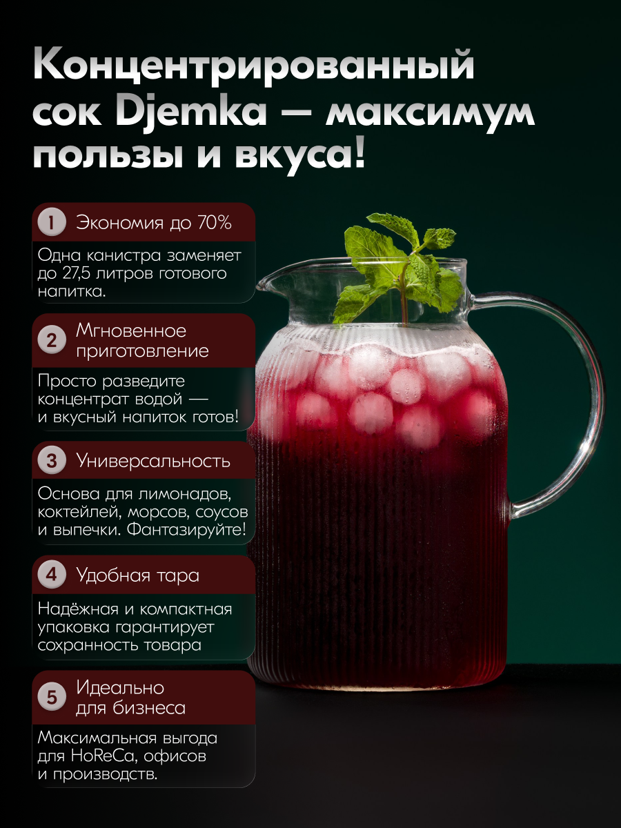 Откройте для себя концентрированный гранатовый сок 5 кг от Djemka. Гранатовый сок - идеальный ингредиент для создания самых популярных алкогольных и безалкогольных напитков прямо у вас дома. Наш концентрированный сок гранат – это ключ к миру изысканных вкусов и ароматов, позволяющий вам наслаждаться неповторимыми напитками.
